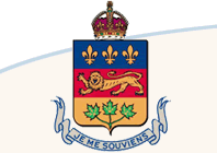 Tiercé en fasce; d'azur, à trois fleurs-de-lis d'or; de gueules, à un léopard d'or, armé et lampassé d'azur; d'or, à une branche d'érable à sucre à triple feuille de sinople, aux nervures du champ. Timbré de la couronne royale. Sous l'écu, un listel d'argent bordé d'azur portant la devise JE ME SOUVIENS du même. La composition des premières armoiries du Québec (1868) utilisait les fleurs de lis pour souligner l'origine française de la majorité de la population, le «léopard», ou lion passant or sur fond rouge pour rappeler les liens du Québec avec la Grande- |