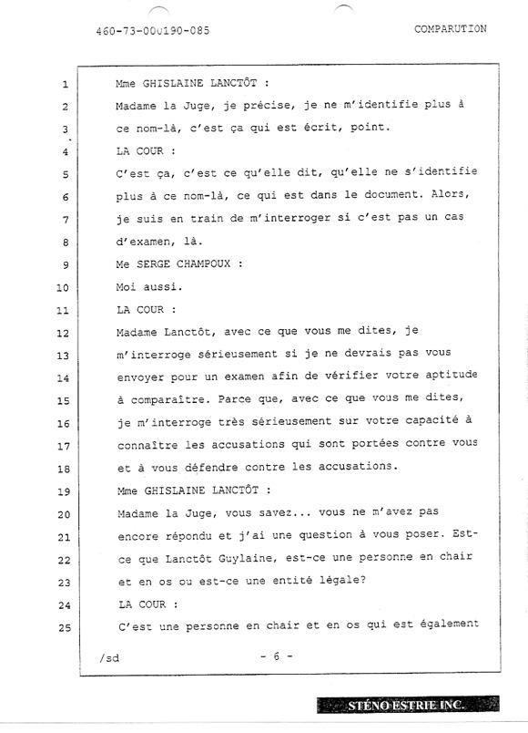 Lanctôt, Guylaine, ce n'est pas la personne que vous avez devant
