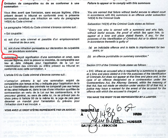 que ça m'a été remis à moi, cette sommation-là.